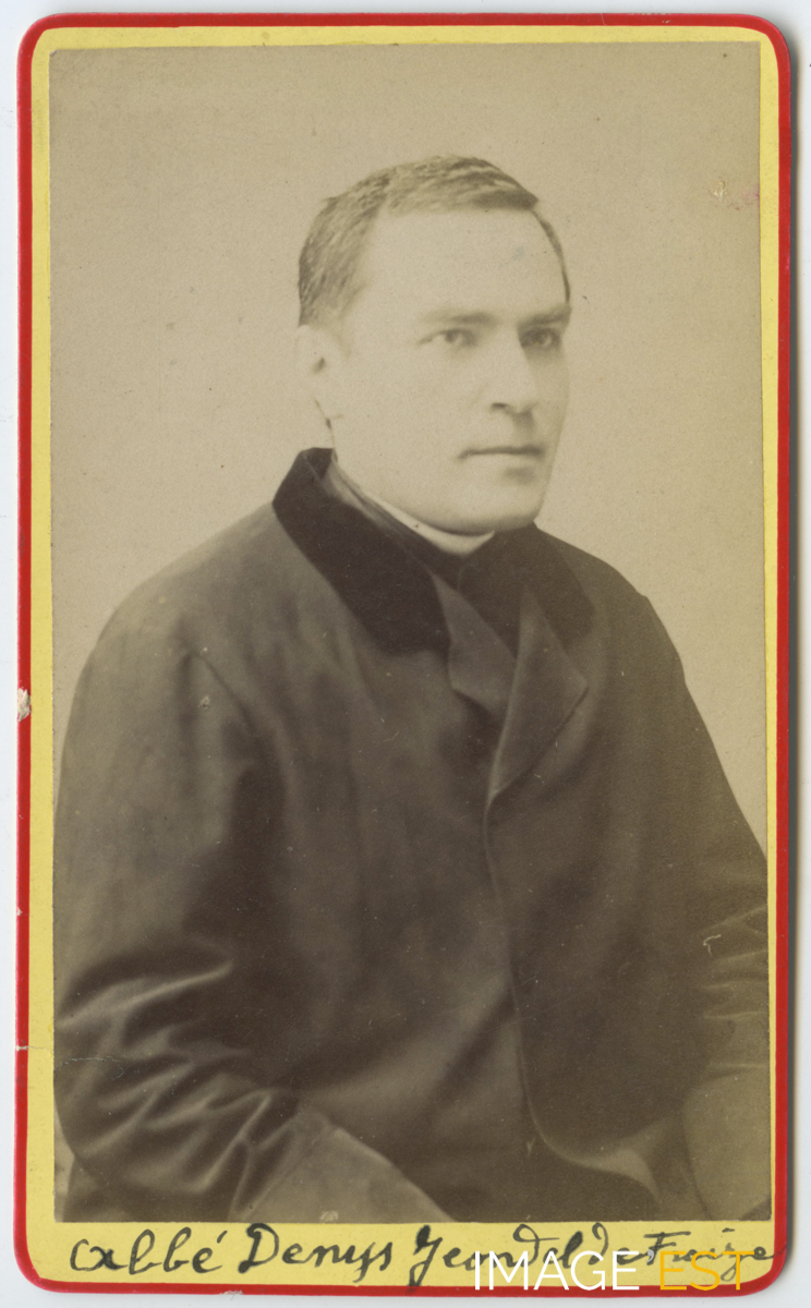 Portrait de l'abbé Jeandel à Fraize (Vosges) mort en 1918. Cette photographie est extraite d'un album contenant des portraits de nombreux prêtres ayant exercés dans le département des Vosges entre 1870 et 1910 environ.