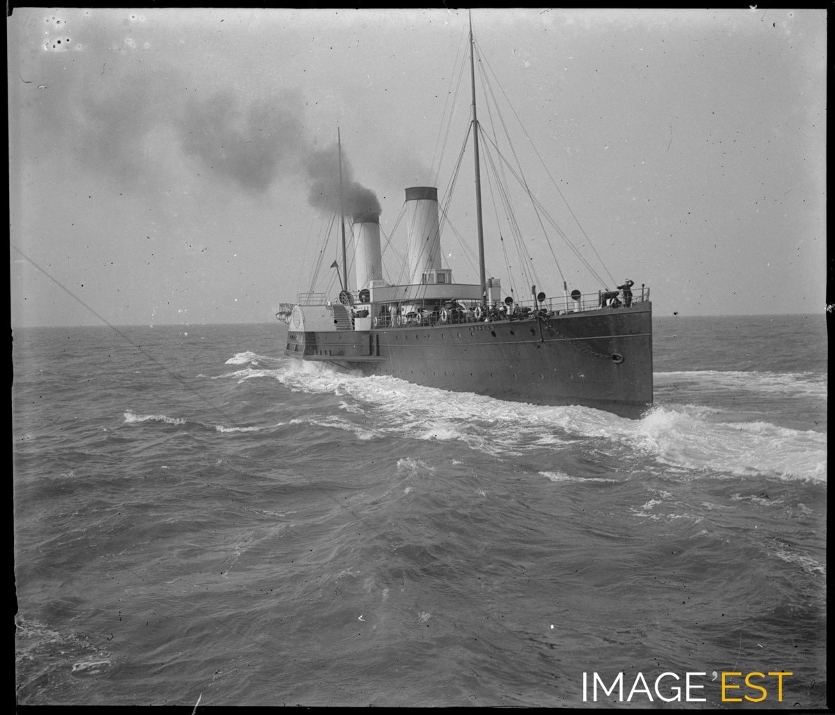 La Malle près de Calais (Pas-de-Calais). Le nom du bateau " L'Empress " est visible sur la coque au niveau de la proue.