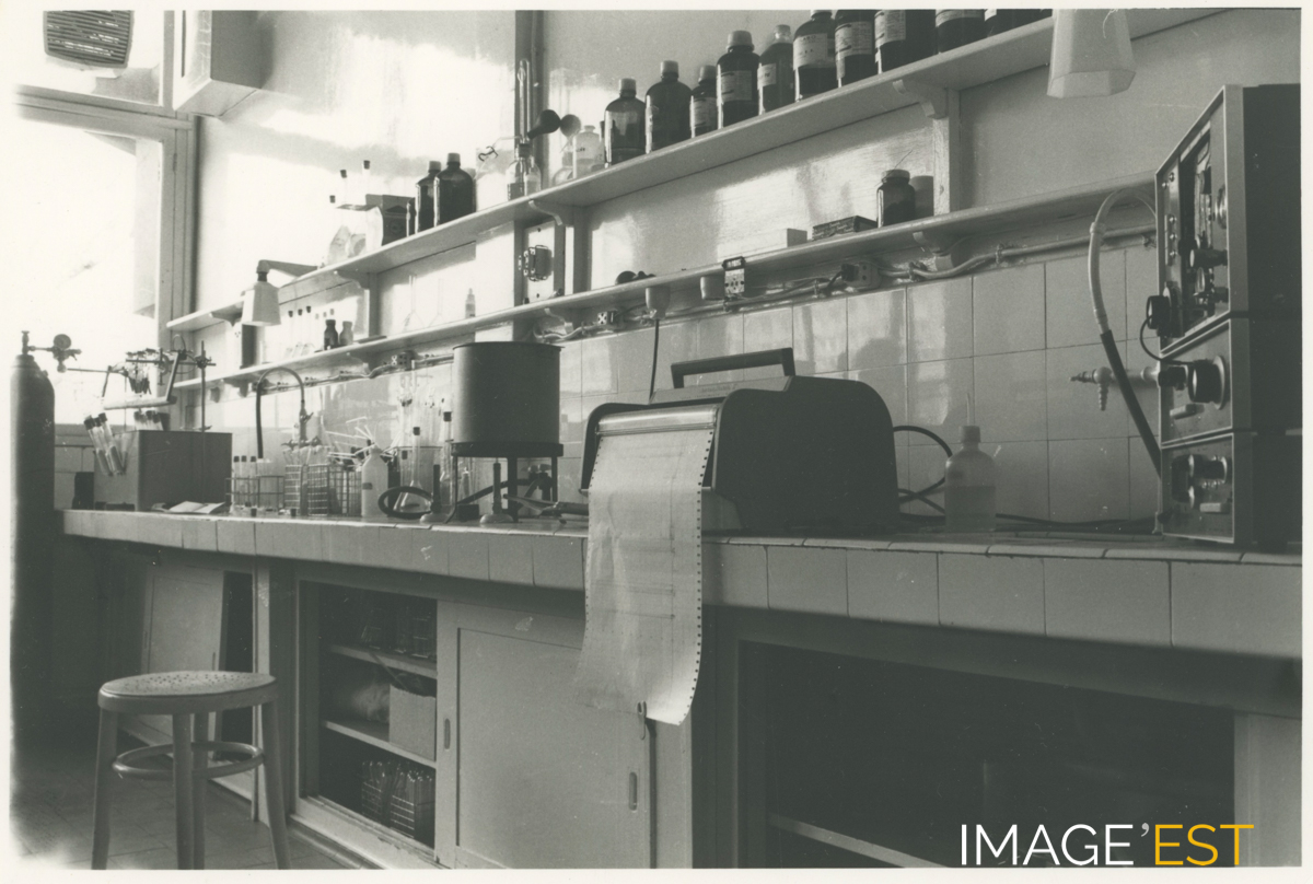 Laboratoire de l'Ensaia (École nationale supérieure d'agronomie et des industries alimentaires) rue Sainte-Catherine à Nancy (Meurthe-et-Moselle). L'histoire de cette institution remonte à la création successive de trois grandes écoles, l'École de brasserie et de malterie de Nancy (1893), l'Institut colonial et agricole de Nancy (1901) et l'École de laiterie de Nancy (1905). En 1948, l'Institut colonial et agricole de Nancy devient l'École nationale supérieure d'agronomie de Nancy (ENSA). En 1971, les trois grandes écoles (École de brasserie, École de laiterie et Ensa) fusionnent et donnent naissance à l'Ensaia. C'est en 1984 que l'Ensaia quitte ses locaux de la rue Sainte-Catherine à Nancy pour s'installer sur le plateau de Brabois (Source : https://ensaia.univ-lorraine.fr/fr/content/histoire-ensaia).