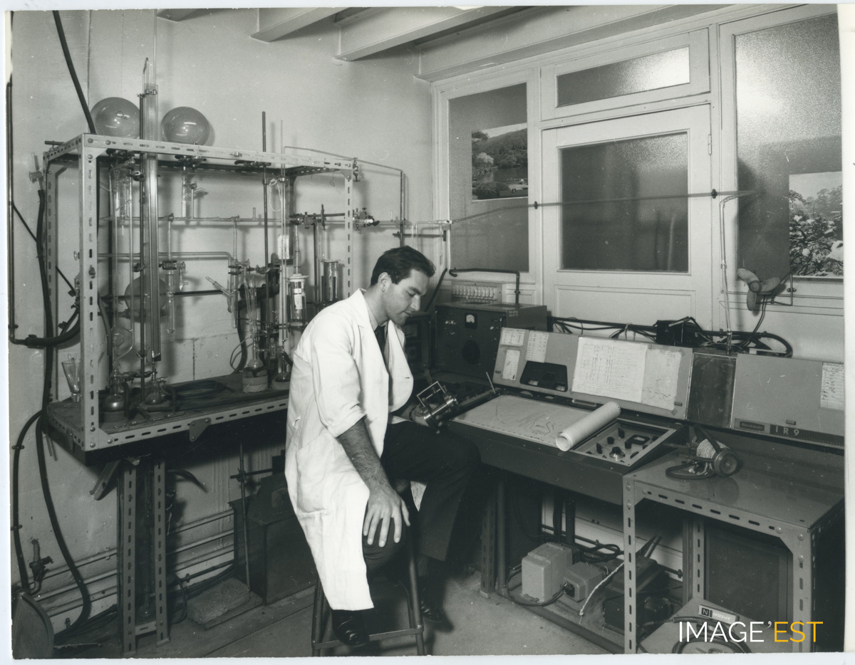 Laboratoire de l'École nationale supérieure des industries chimiques (ENSIC) à Nancy (Meurthe-et-Moselle). Cachet du photographe " Charles André Nancy n° 2- 6166 ".