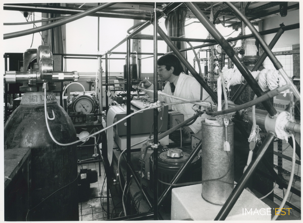 Laboratoire de l'École nationale supérieure des industries chimiques (ENSIC) à Nancy (Meurthe-et-Moselle). Cachet du photographe " Charles André Nancy n° 16- 5689 ".