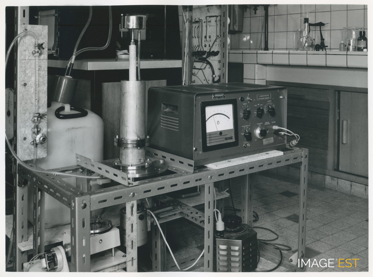 Laboratoire de l'École nationale supérieure des industries chimiques (ENSIC) à Nancy (Meurthe-et-Moselle). Cachet du photographe " Charles André Nancy n° 20- 5689 ". Une mention manuscrite au verso précise : " ".