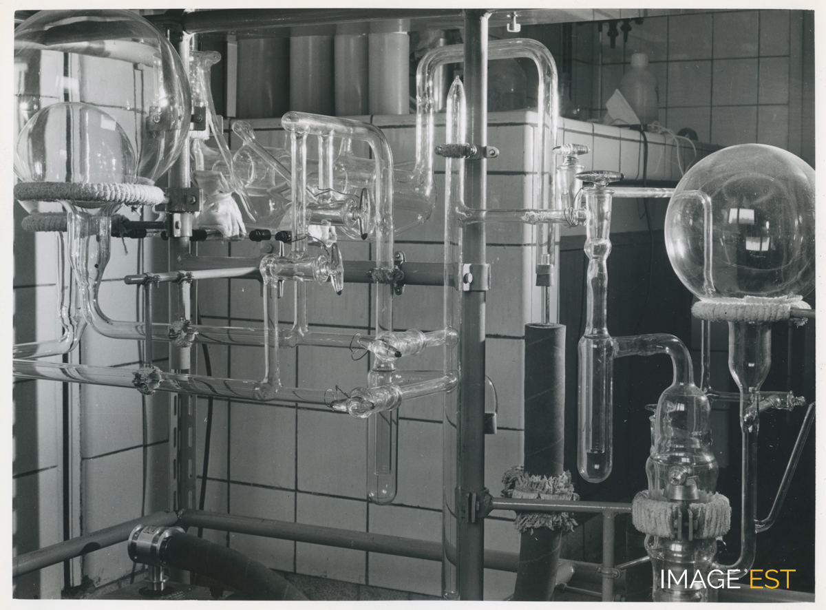 Laboratoire de l'École nationale supérieure des industries chimiques (ENSIC) à Nancy (Meurthe-et-Moselle). Cachet du photographe " Charles André Nancy n° 64-4107 ".