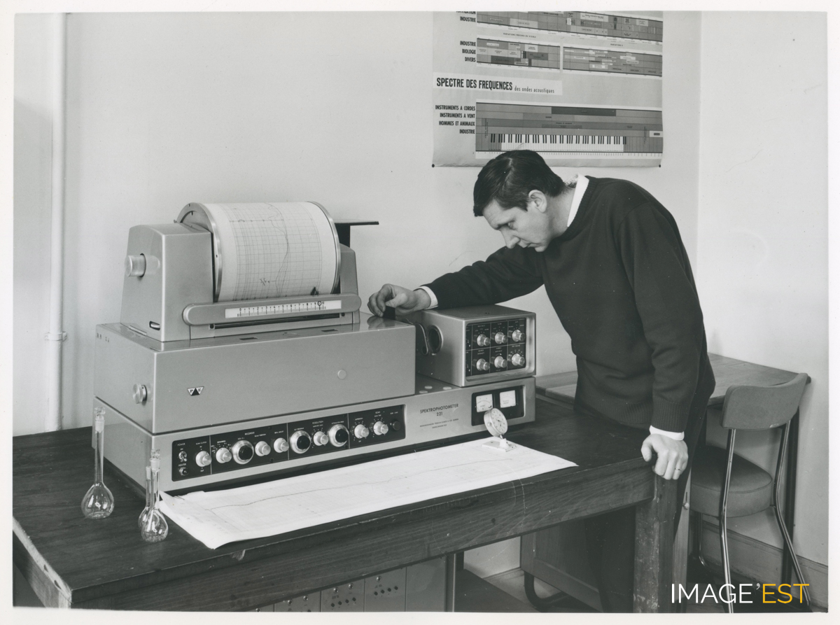 Laboratoire de l'École nationale supérieure des industries chimiques (ENSIC) à Nancy (Meurthe-et-Moselle). Cachet du photographe " Charles André Nancy n° 98-4107 ".