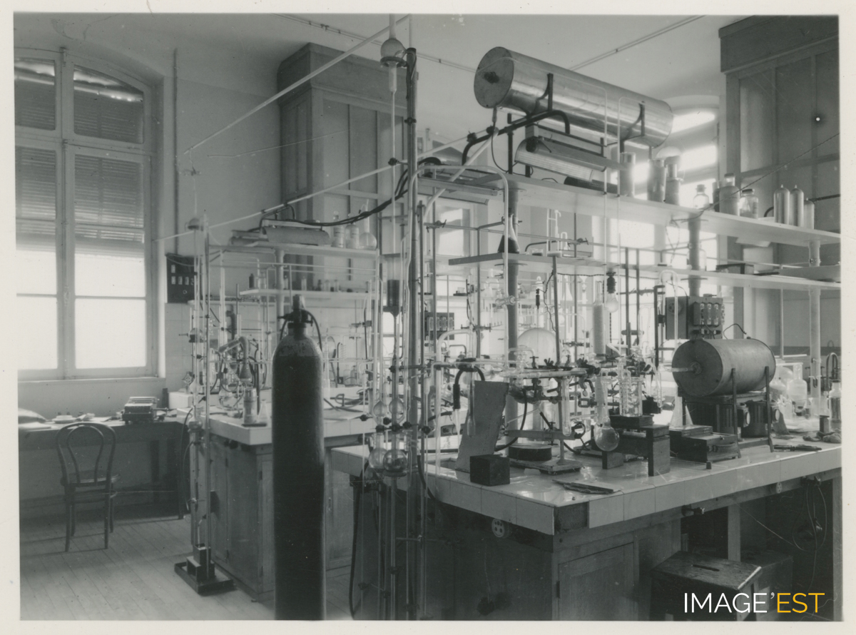 Un laboratoire de l'École nationale supérieure des industries chimiques (ENSIC) à Nancy (Meurthe-et-Moselle). Une mention de date " 12/4/1951 " figure au verso.