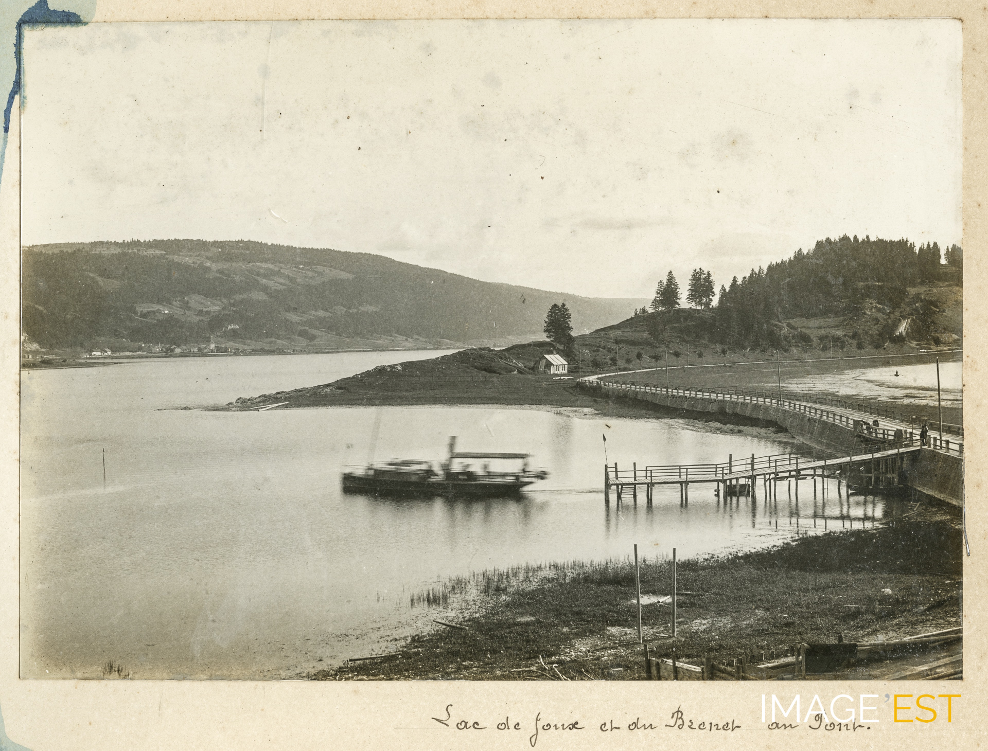 Lac de Joux et du Brenet au Pont près de L'Abbaye (Suisse). Cette photographie est extraite d'un album photographique intitulé, " Jura et Suisse J. D. 1894-1895 " comprenant 73 photographies contrecollées sur carton, prises par le lieutenant-colonel Joseph Jules Delarue (1839-1925), commandant le 50e régiment territorial d'infanterie de Nancy, photographe amateur et membre actif de la prestigieuse Société Lorraine de Photographie (fondée à Nancy en 1894) à laquelle il adhère en 1895 (Bulletin de la Société Lorraine de Photographie, n°3 septembre 1895).