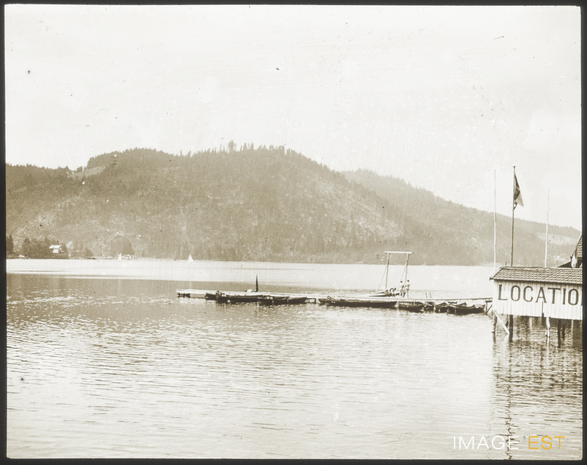 Ponton sur le lac de Gérardmer (Vosges). Une mention manuscrite en marge de la plaque de verre indique : " Gerardmer. "