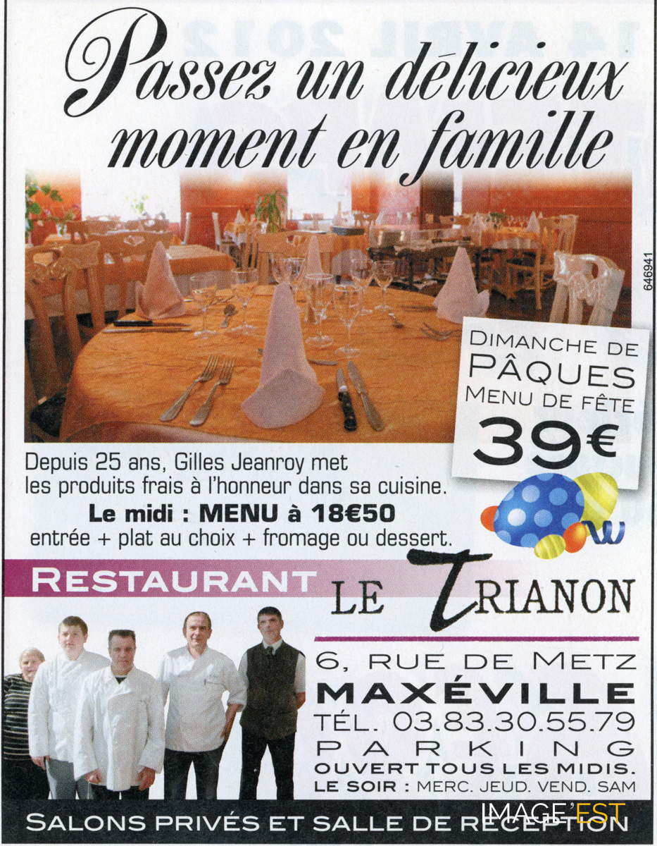 Encart publicitaire du restaurant " le Trianon " à Maxéville (Meurthe-et-Moselle).