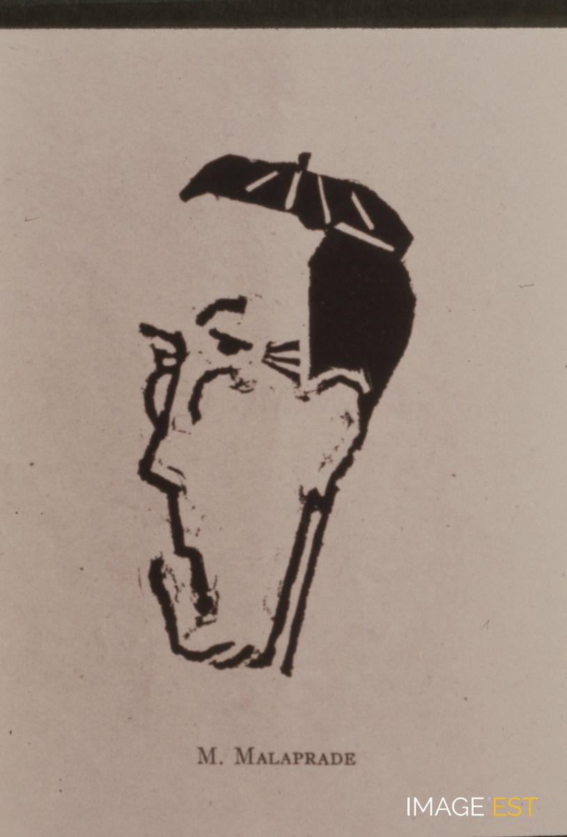 Caricature de Léon Malaprade (1903-1982), ingénieur chimiste, professeur à l'École nationale supérieure des industries chimiques à Nancy (Meurthe-et-Moselle).