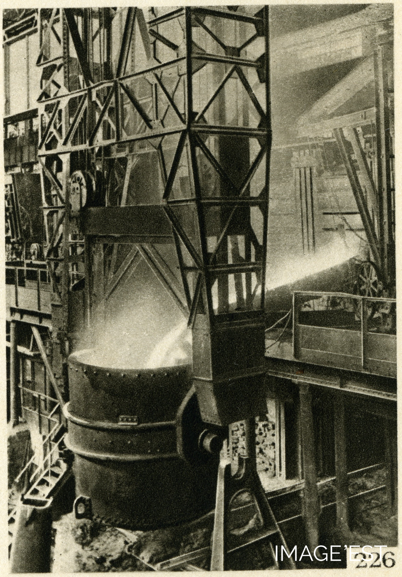 Pour effectuer la coulée à l'aciérie Martin, on perce un trou dans les fours fixes et on incline les fours oscillants