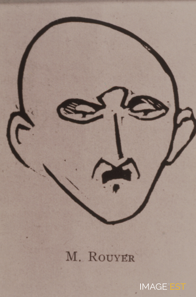 Caricature de M. Rouyer, probablement enseignant à l'École nationale supérieure des industries chimiques de Nancy (Meurthe-et-Moselle).