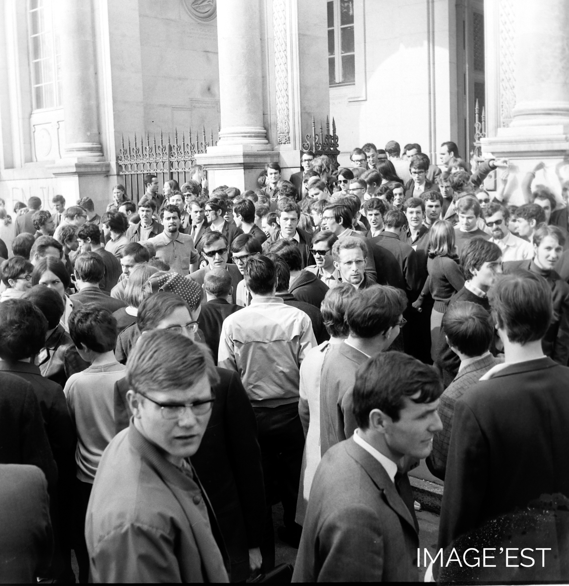 Manifestants lors des journées de Mai 1968 devant la Faculté de droit à Nancy (Meurthe-et-Moselle).