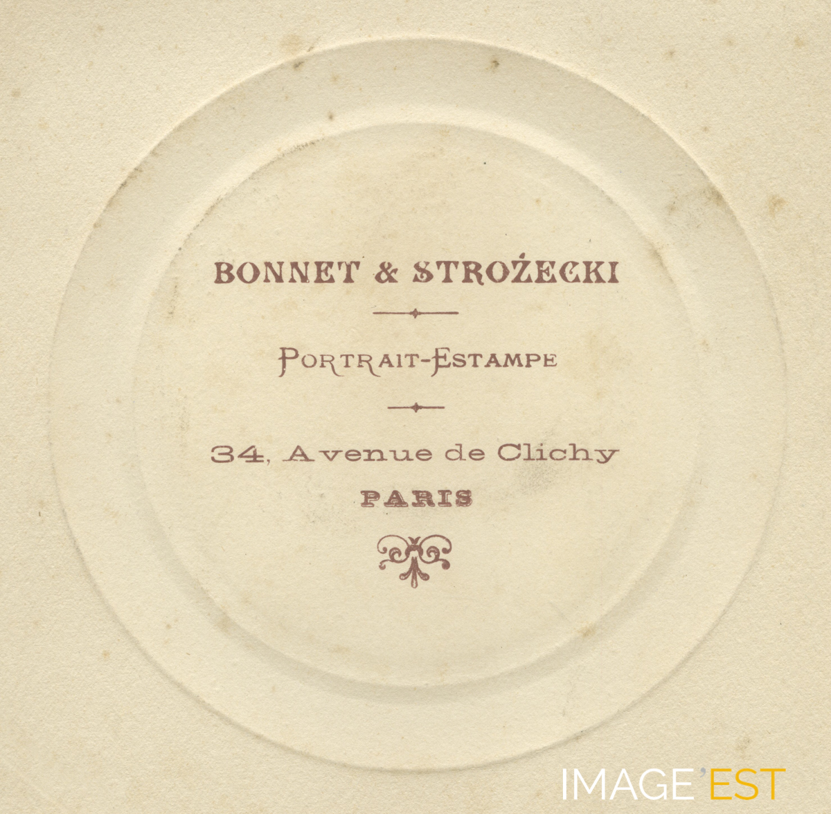 Cachet de la Maison " Bonnet & Strozecki - Portrait-Estampe, 34 avenue de Clichy Paris ".