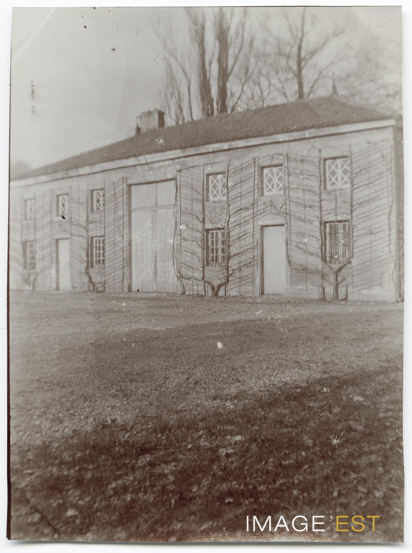 Vue extraite d'un album photographique intitulé " Parc de Ste Marie - Avant sa transformation " illustrant la maison du jardinier au sein du parc Sainte-Marie à Nancy (Meurthe-et-Moselle) en 1905. Une légende manuscrite en marge de ce cliché indique : " Maison du jardinier. Vue de la grande barrière ".