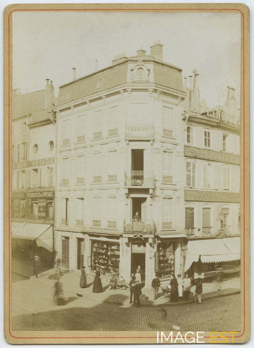 Maison E. Grand (opticien) installée à l'angle des rues Saint-Dizier et Saint-Georges à Nancy (Meurthe-et-Moselle).