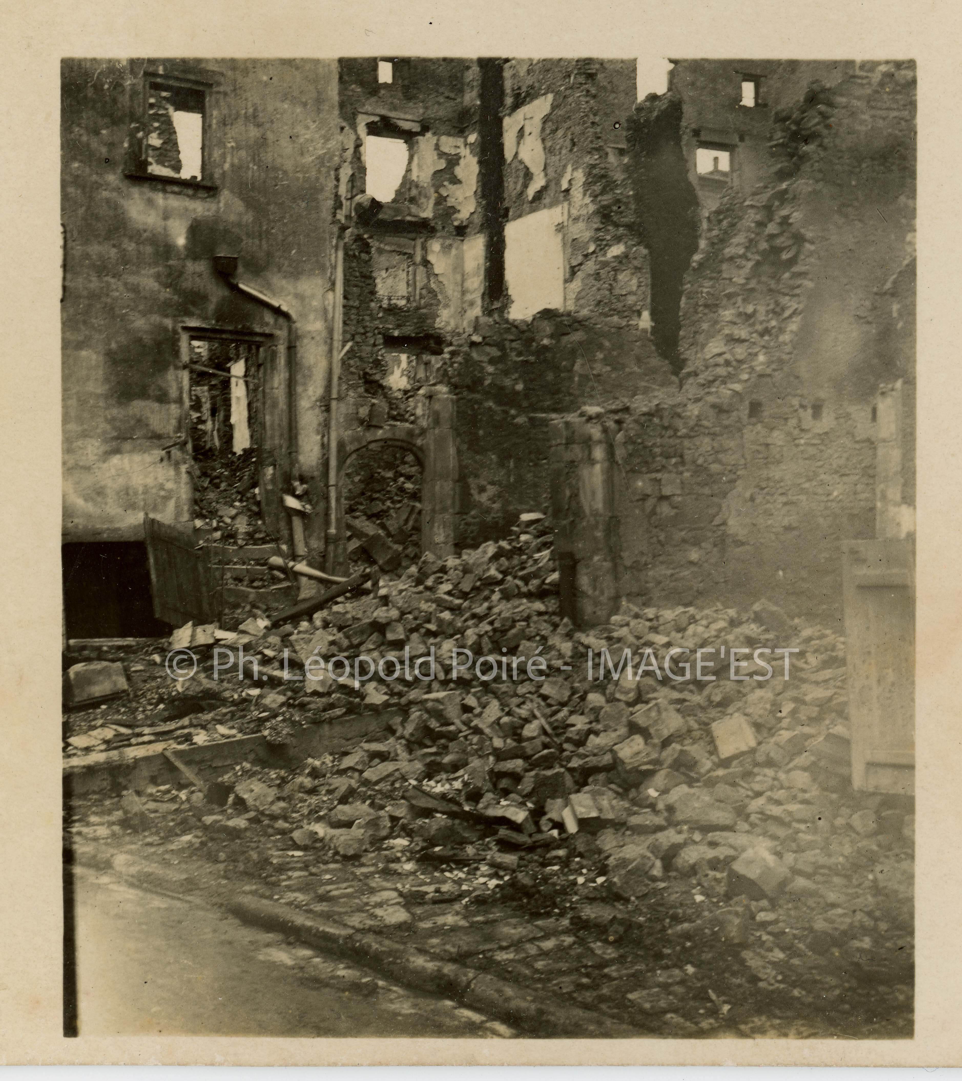 Maisons en ruines à Gerbéviller (Meurthe-et-Moselle) dévastées par les bombardements durant la Première Guerre mondiale.