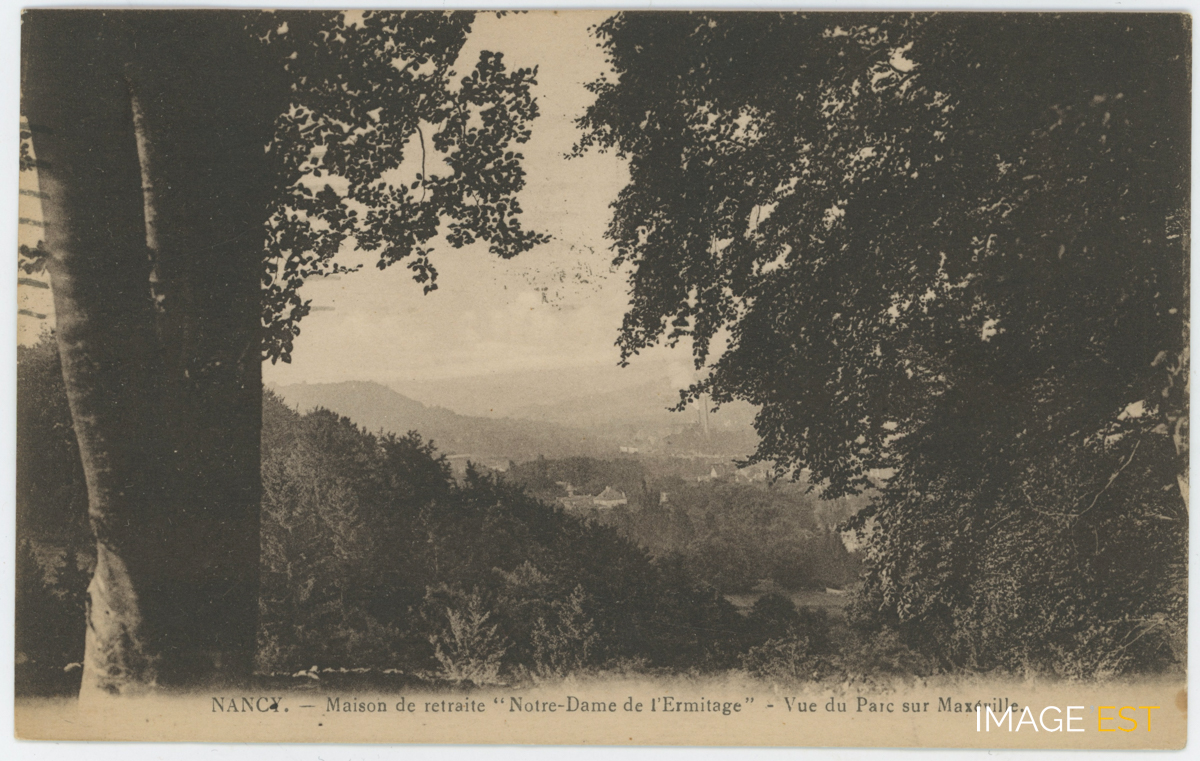 Vue sur Maxéville (Meurthe-et-Moselle) prise du jardin de la maison de retraite " Notre-Dame de l'Ermitage " à Nancy (Meurthe-et-Moselle).