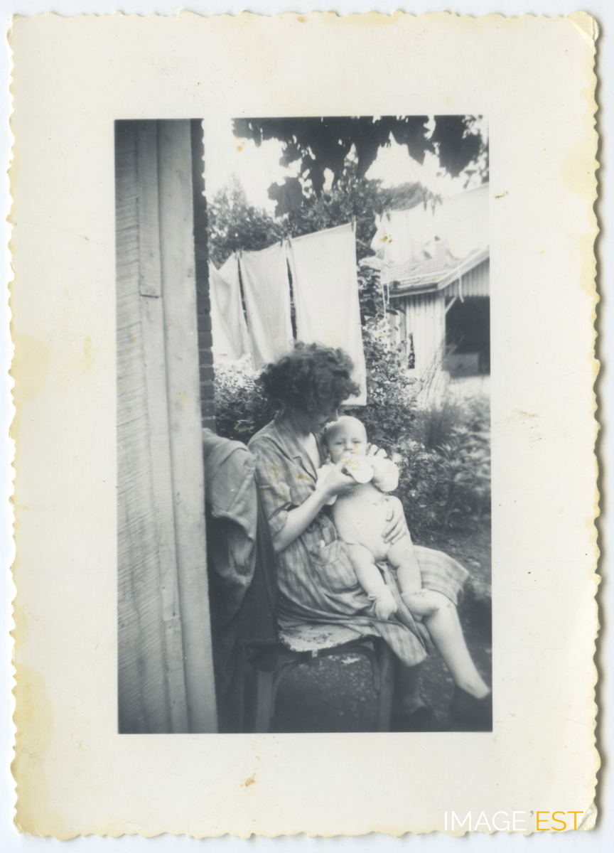 Christian Gaspard dans les bras de sa maman 28, rue Pasteur aux cités Solvay à Maxéville (Meurthe-et-Moselle).