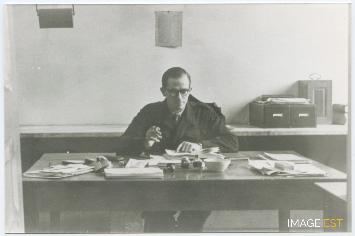 Portrait de Michel Niclause (1923-1997), licencié ès sciences, assistant de chimie à la Faculté des Sciences de Nancy (Source : https://cths.fr/an/savant.php?id=112672#). Une mention manuscrite au verso précise : " Niclause ". Sur un album bleu faisant partie des collections de l'ENSIC, une photographie quasiment identique porte la légende manuscrite suivante sur un calque : " Laboraoire de chimie physique Ch. Niclause, chef de travaux ".