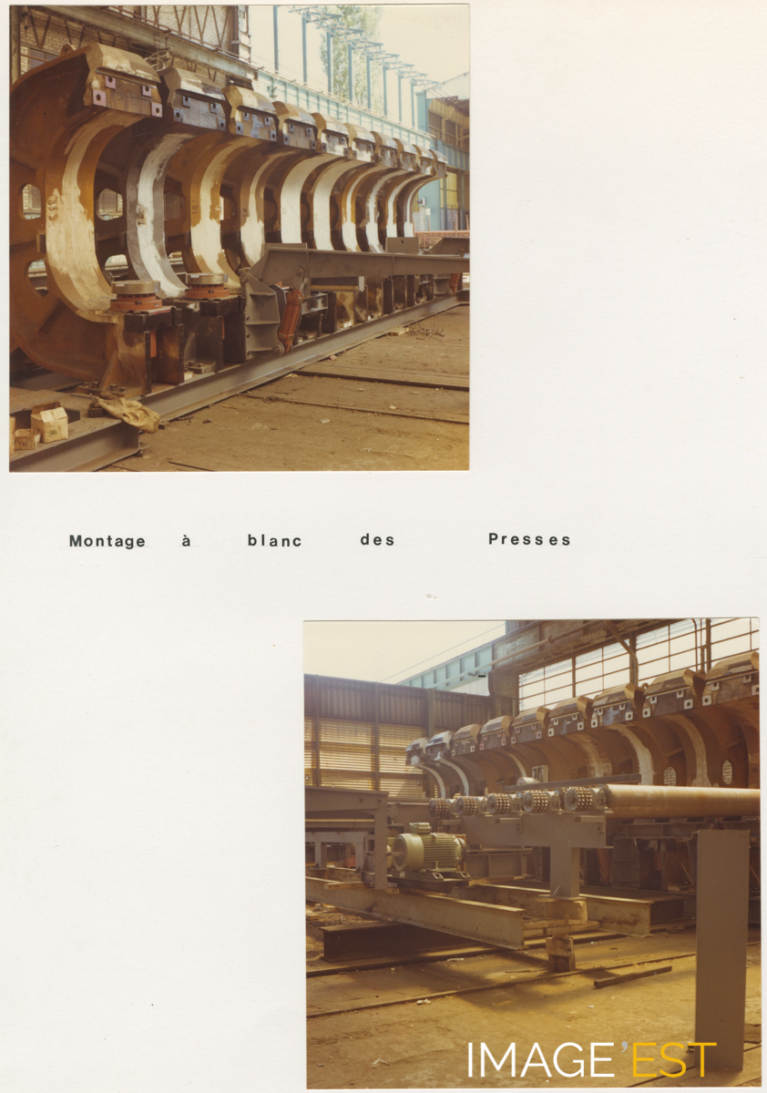 Montage à blanc de presses à l'usine de Belleville (Meurthe et Moselle) en 1977.