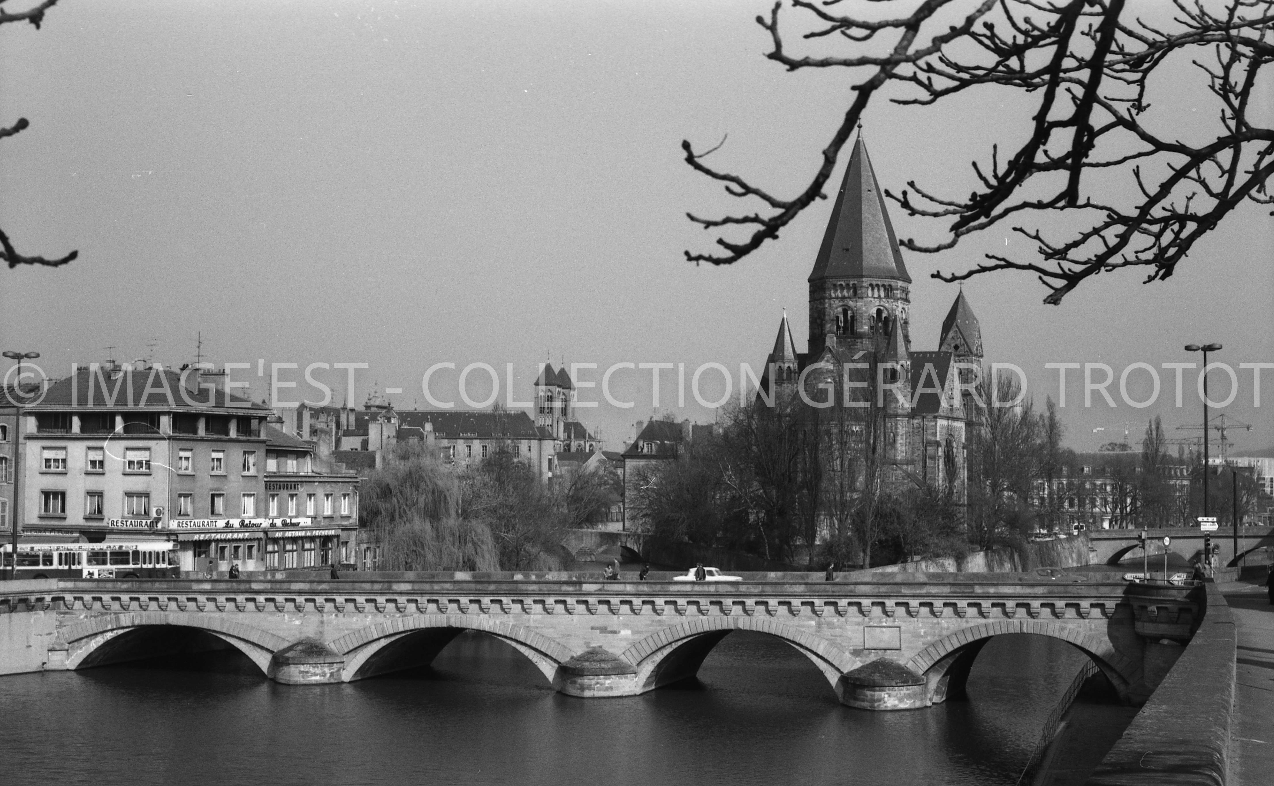 Moyen Pont et Temple Neuf à Metz (Moselle).