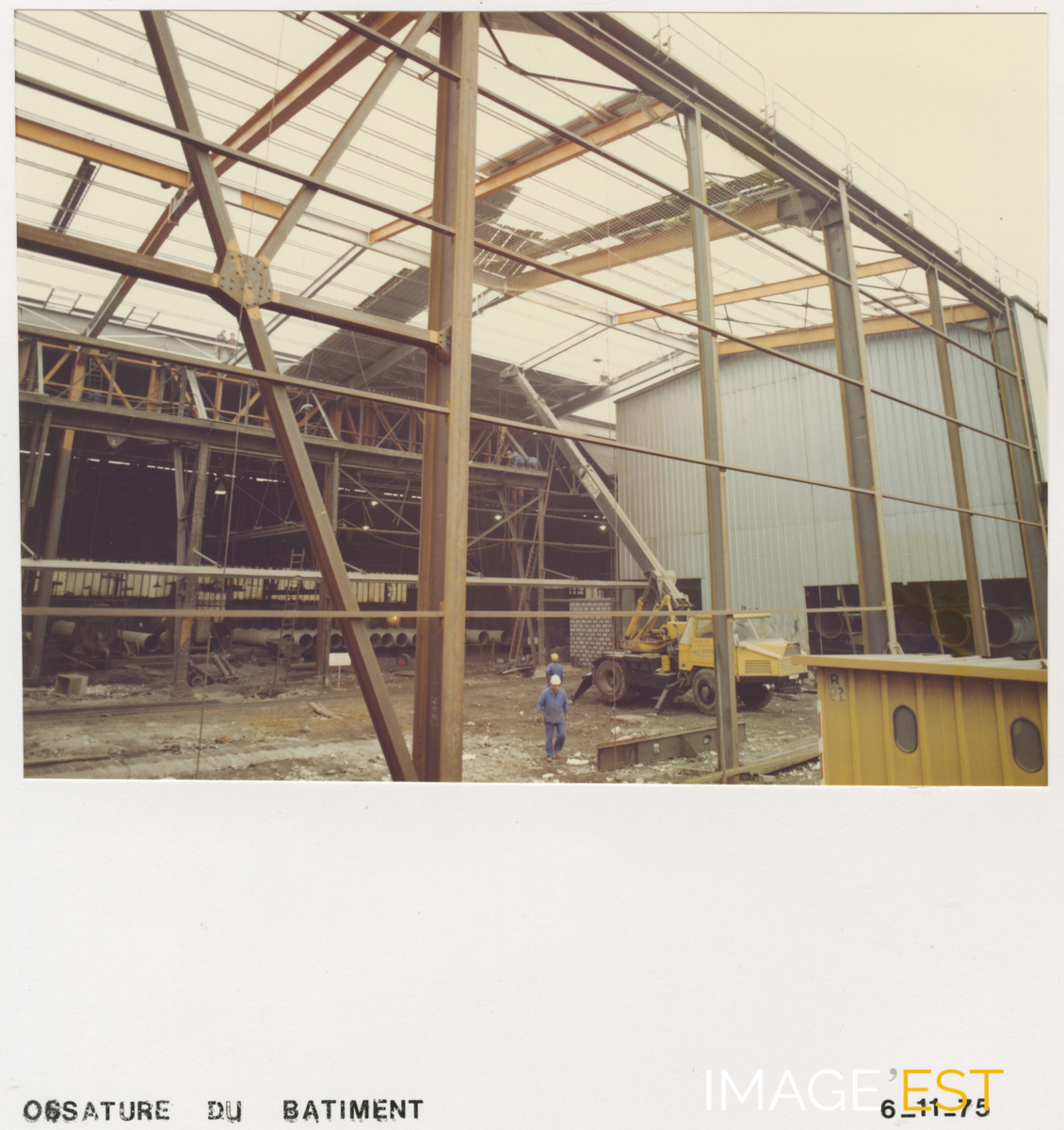 Ossature d'un bâtiment de l'usine de Pont-à-Mousson (Meurthe et Moselle) le 6 novembre 1975.