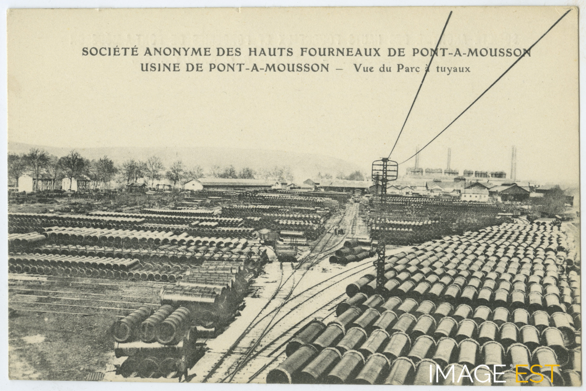 Parc à tuyaux de l'usine de Pont-à-Mousson (Meurthe et Moselle).