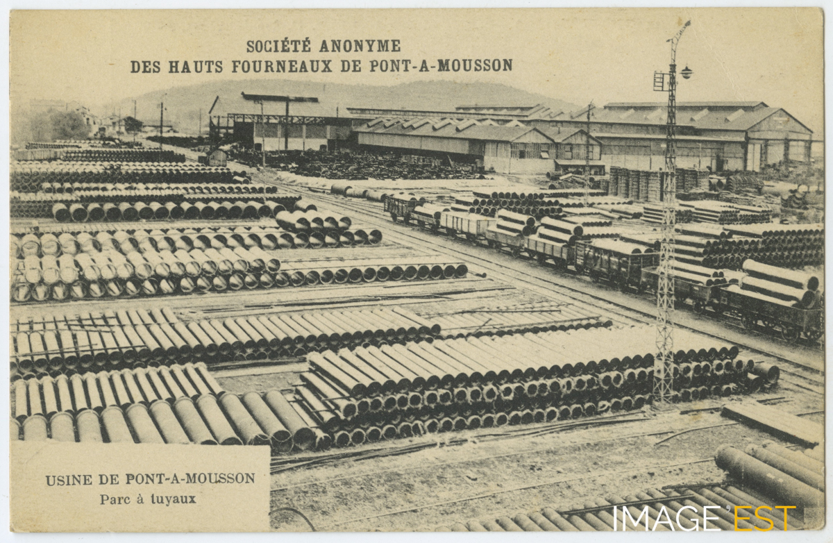 Parc à tuyaux de l'usine de Pont-à-Mousson (Meurthe et Moselle).