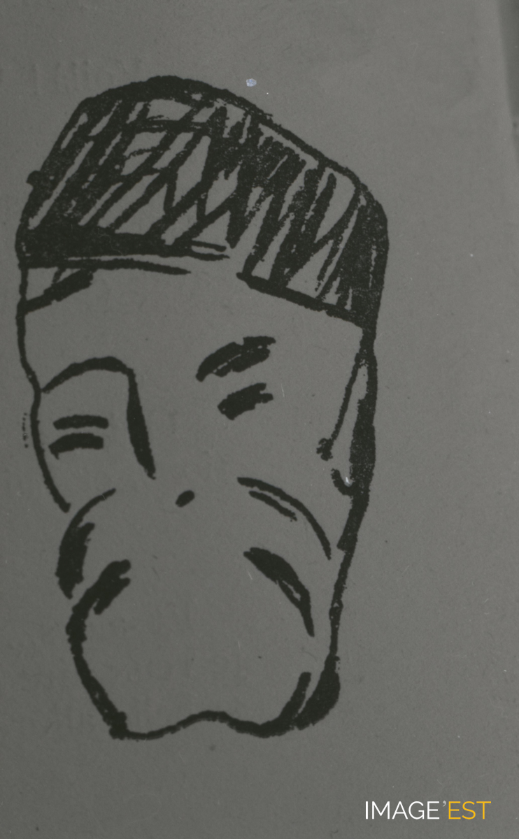 Caricature probable de Paul Thiébaut Muller (1863-1933), professeur à la Faculté des Sciences de Nancy à Nancy (Meurthe-et-Moselle), créateur de l'Enseignement de la chimie physique en France (http://cussenot-fst-nancy.ahp-numerique.fr/cussenot2/alphabetique.php?alpha=T).