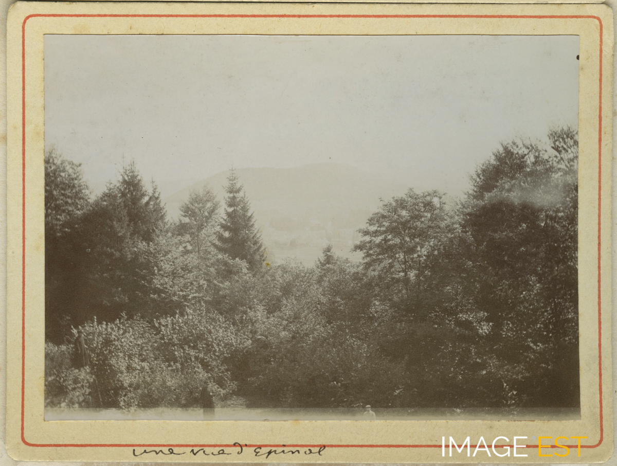 Paysage à Épinal (Vosges). Cette photographie est extraite d'un album contenant des portraits de nombreux prêtres ayant exercés dans le département des Vosges entre 1870 et 1910 environ.