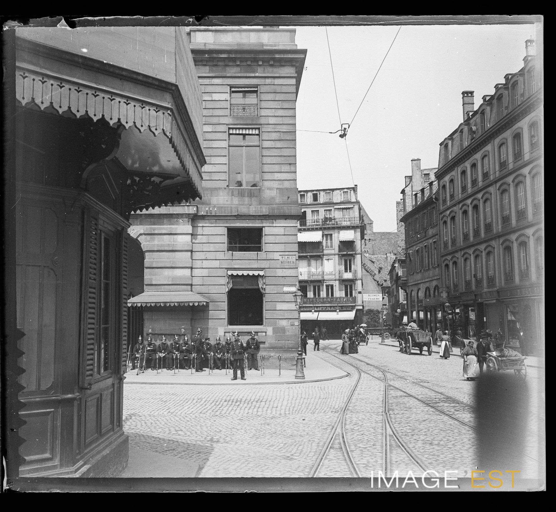Place Kléber à Strasbourg (Bas-Rhin). Au second plan, la garde montante des soldats prussiens.