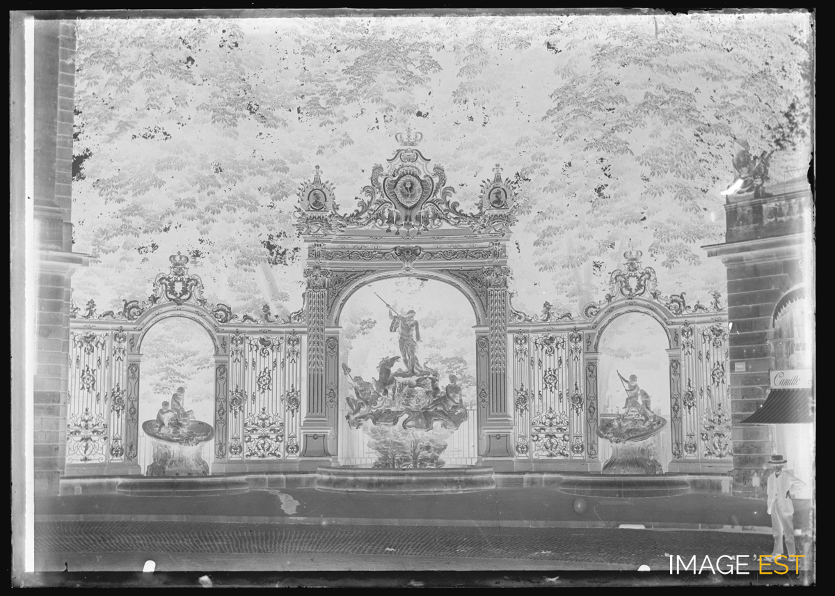 Place Stanislas à Nancy (Meurthe-et-Moselle), fontaine Neptune et les grandes grilles de Jean Lamour.