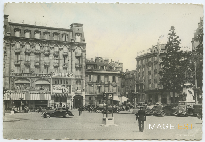 Place, hôtel et monument Thiers à Nancy (Meurthe-et-Moselle). À l'affiche, le film " Dédée d'Anvers " (Yves Allégret, 1948).