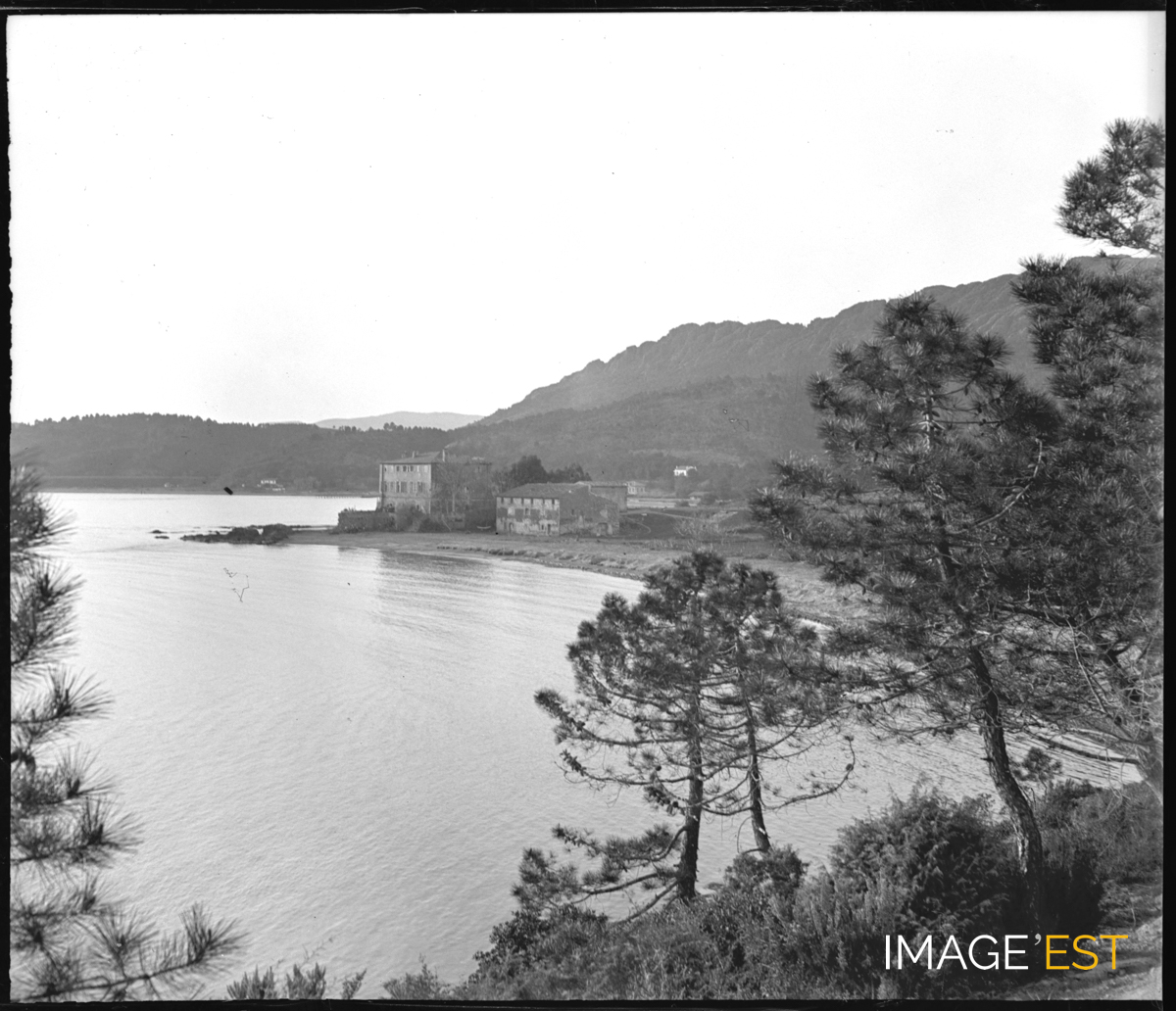 Rade et château du comte d'Agay sur la plage de la Baumette à Agay (Var).
