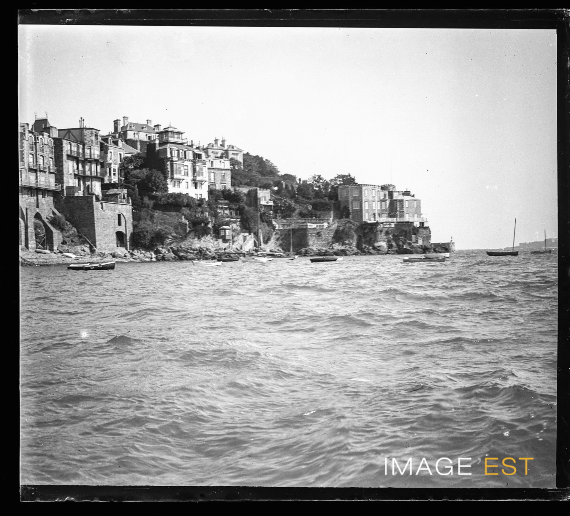 Pointe de la Malouine sur la côte d'Émeraude à Dinard (Ille-et-Vilaine) photographiée en août 1899.
