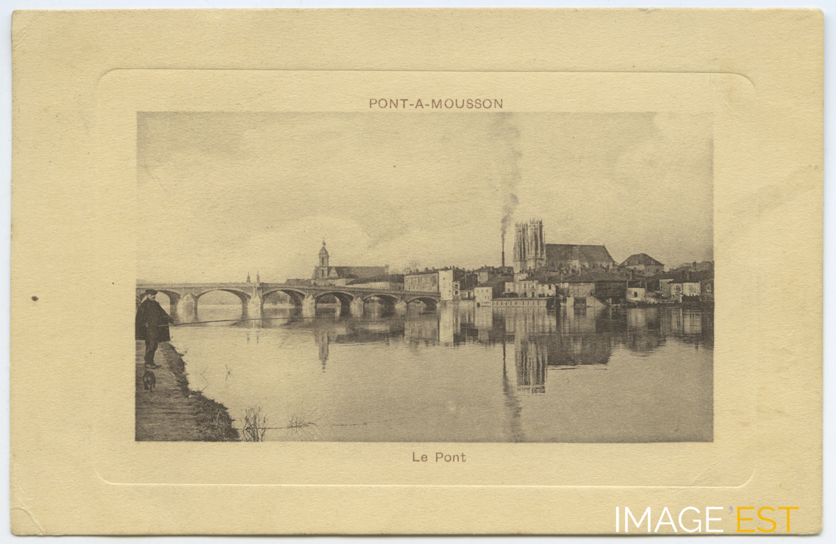 Pont sur la Moselle et vue sur la ville de Pont-à-Mousson (Meurthe et Moselle) à l'arrière-plan.