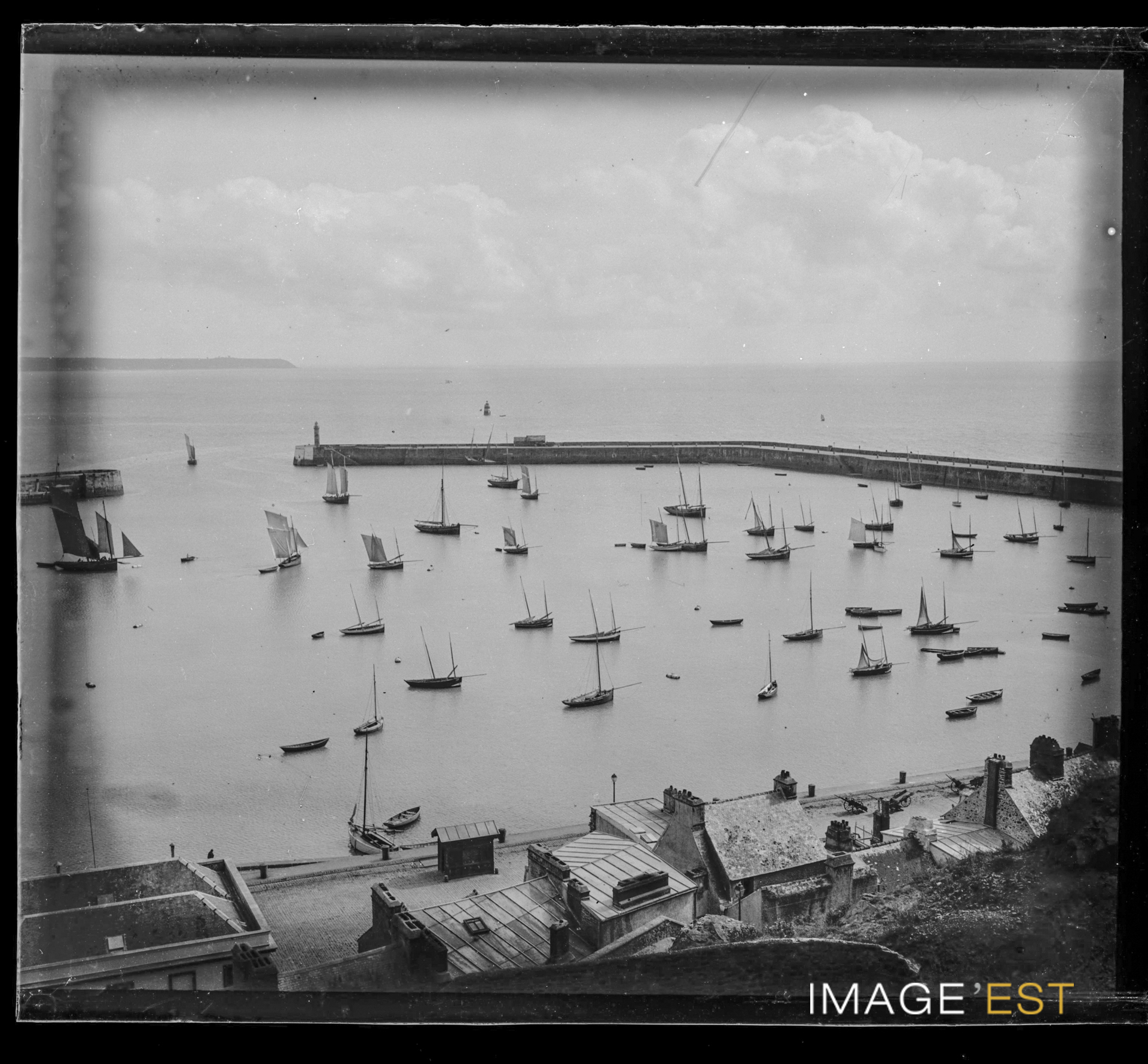 Port et grande jetée à Granville (Manche) photographiés le 17 ou 18 août 1899.