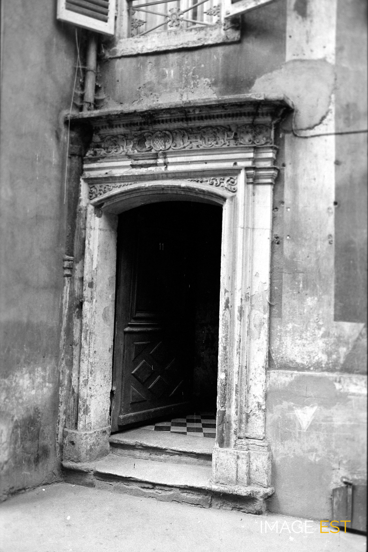 Porte d'entrée d'un immeuble situé 11, rue de la Haye à Metz (Moselle).