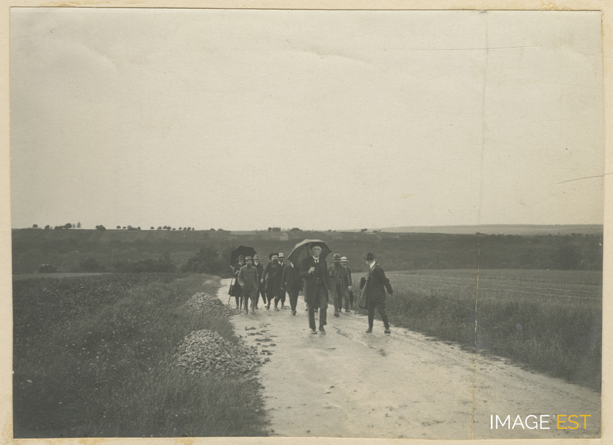 Promenade de la famille Kalis probablement dans le secteur de Flavigny-sur-Moselle (Meurthe-et-Moselle). (Source : Archives privées des familles Kalis-Moreau).