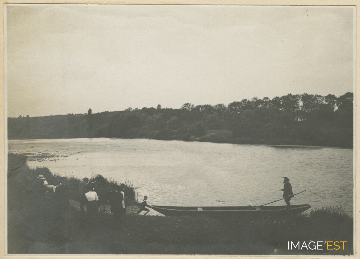 Promenade en barque sur la Moselle à Flavigny-sur-Moselle (Meurthe-et-Moselle) de la famille Kalis. (Source : Archives privées des familles Kalis-Moreau).