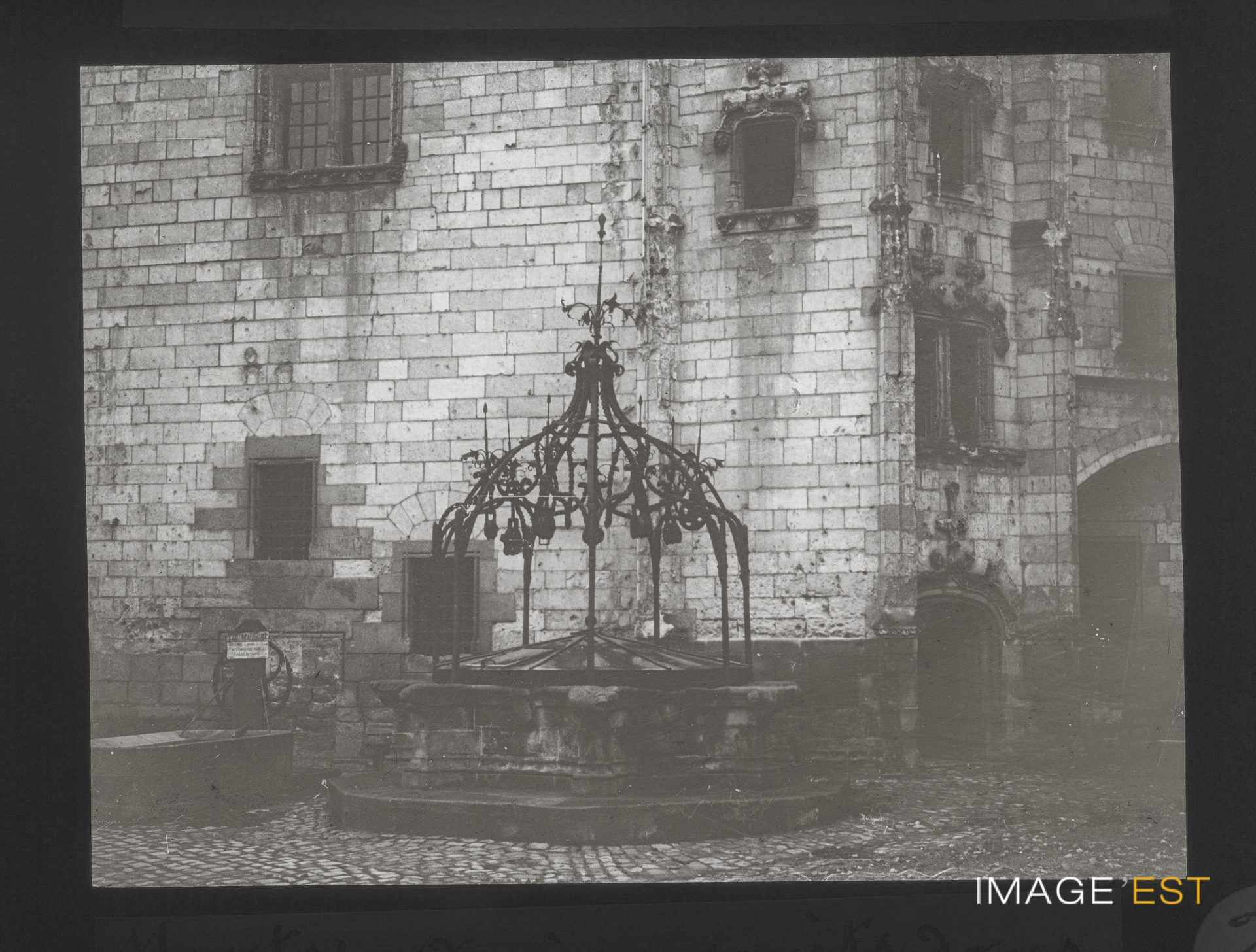 Puits du château des Ducs de Bretagne à Nantes (Loire-Atlantique). Une mention manuscrite en marge de la plaque de verre indique : " Nantes. Ancien puits dans le château. "