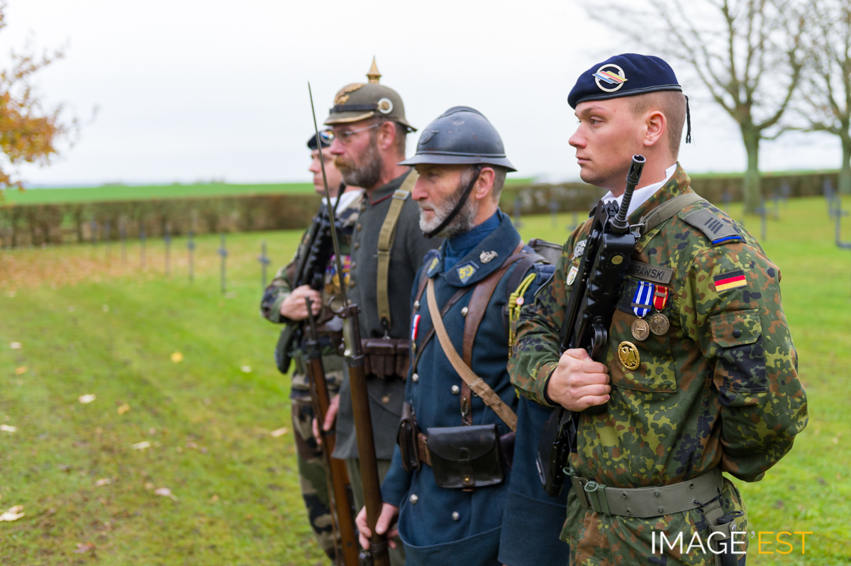 Soldats allemand et français lors de la réinhumation de soldats allemands morts durant la Première Guerre mondiale à Cheppy (Meuse) le 13 novembre 2009.