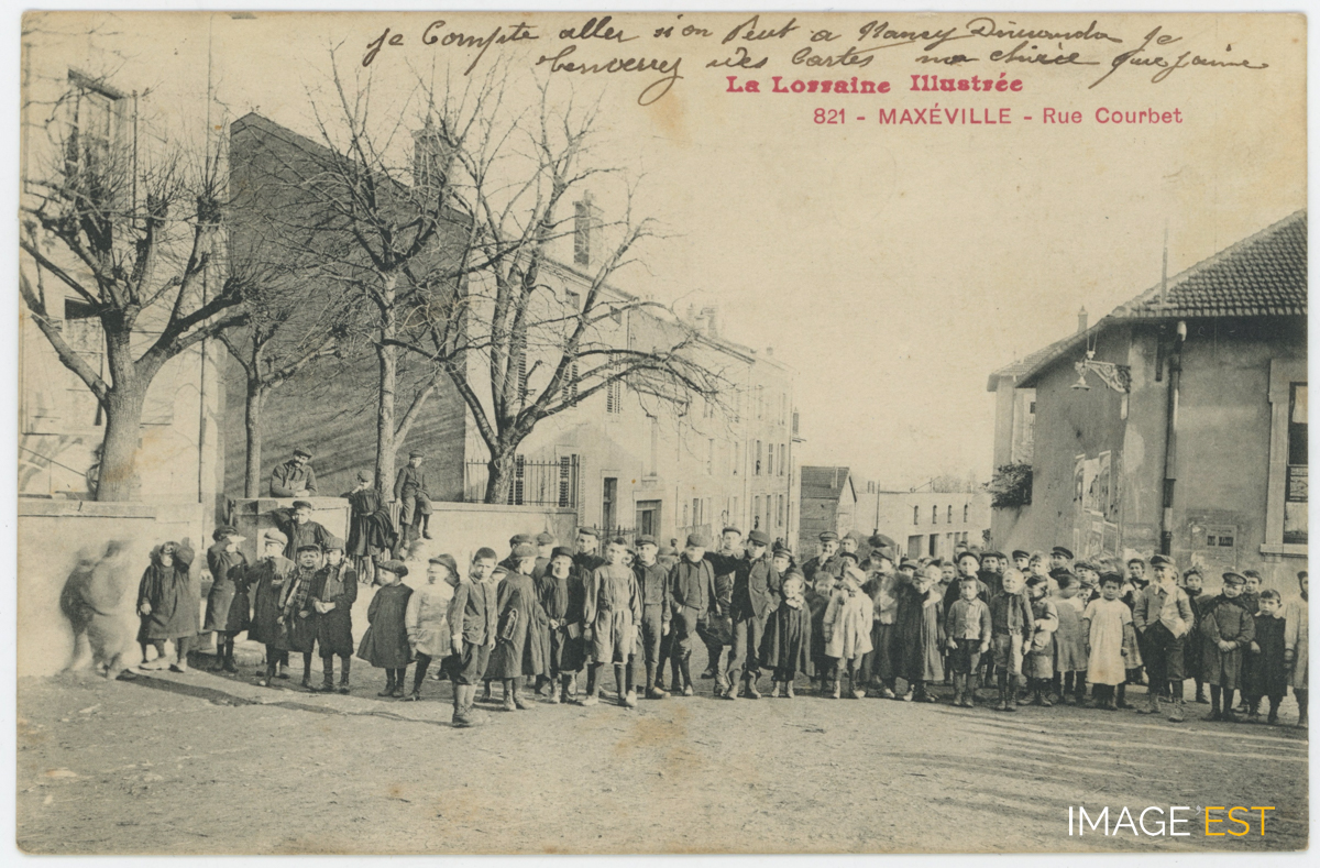 Groupe d'écoliers en haut de la rue Courbet à Maxéville (Meurthe-et-Moselle).