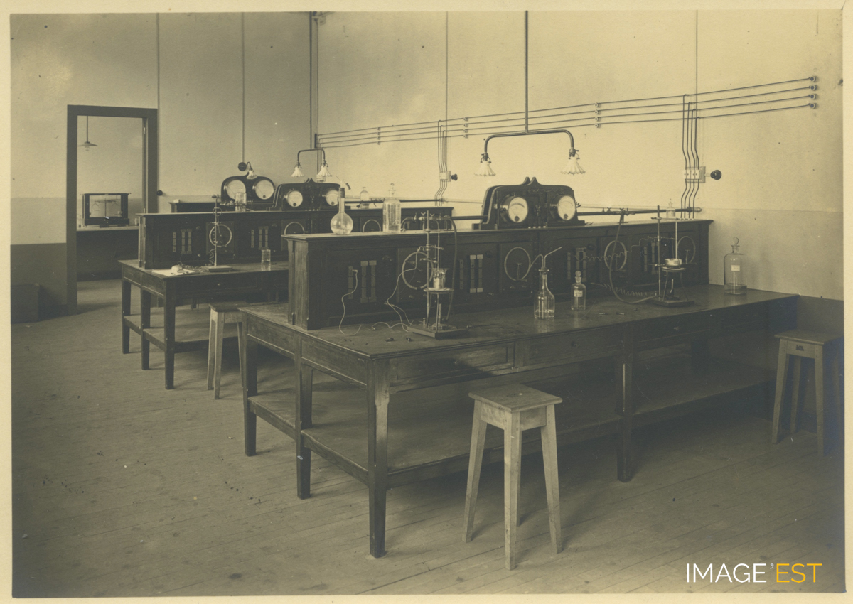 Salle de travaux pratiques de l'École nationale supérieure des industries chimiques (ENSIC) à Nancy (Meurthe-et-Moselle).