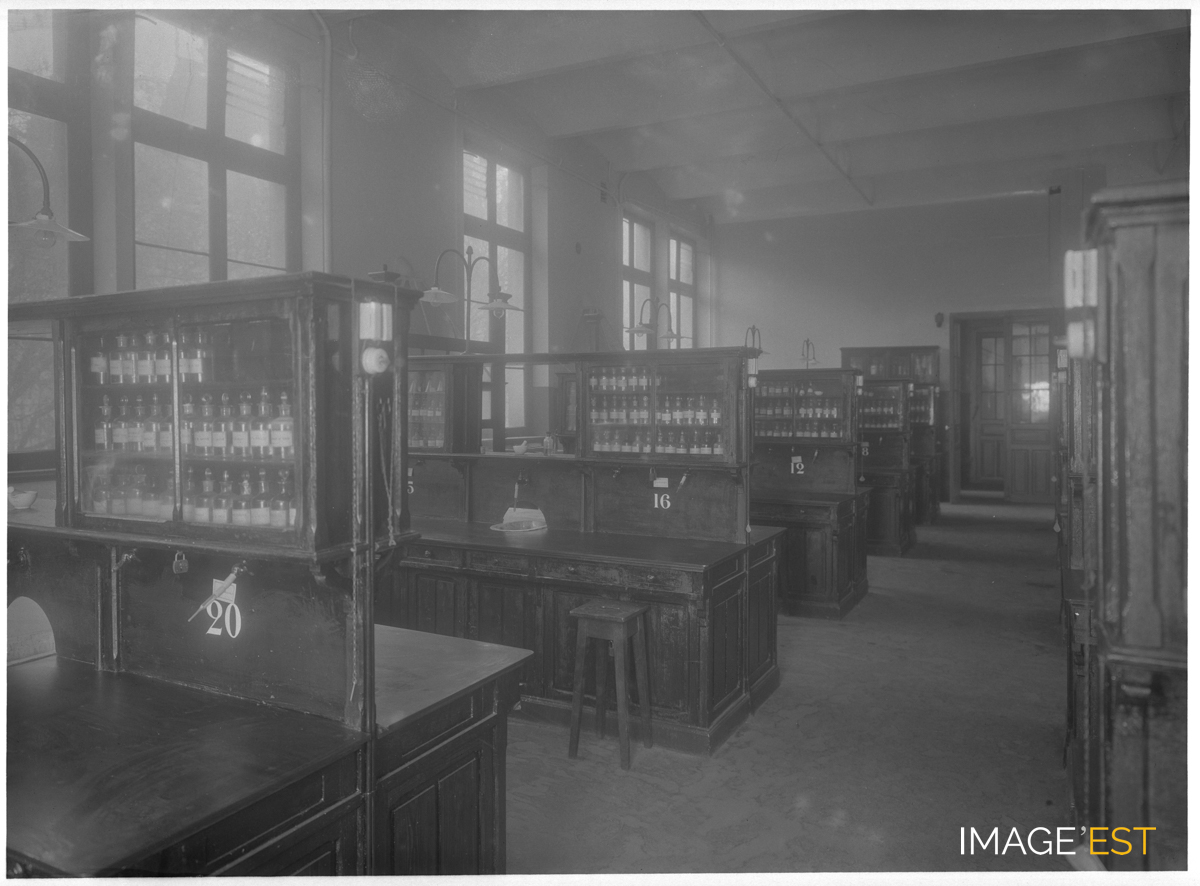 Salle de travaux pratiques de l'Institut chimique à Nancy (Meurthe-et-Moselle).