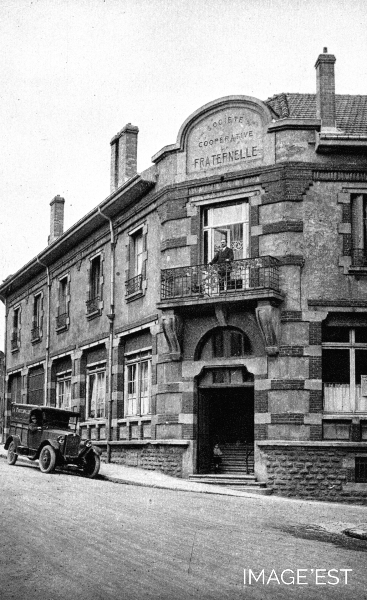 Société coopérative d'alimentation " La Fraternelle " dans la cité de Gouraincourt à Longwy (Meurthe-et-Moselle) en 1929, oeuvre sociale des Aciéries de Longwy.
