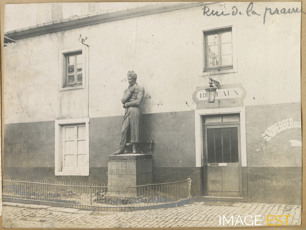 Statue de Mathieu de Dombasle. Une mention manuscrite précise : " Rue de la Prairie ".