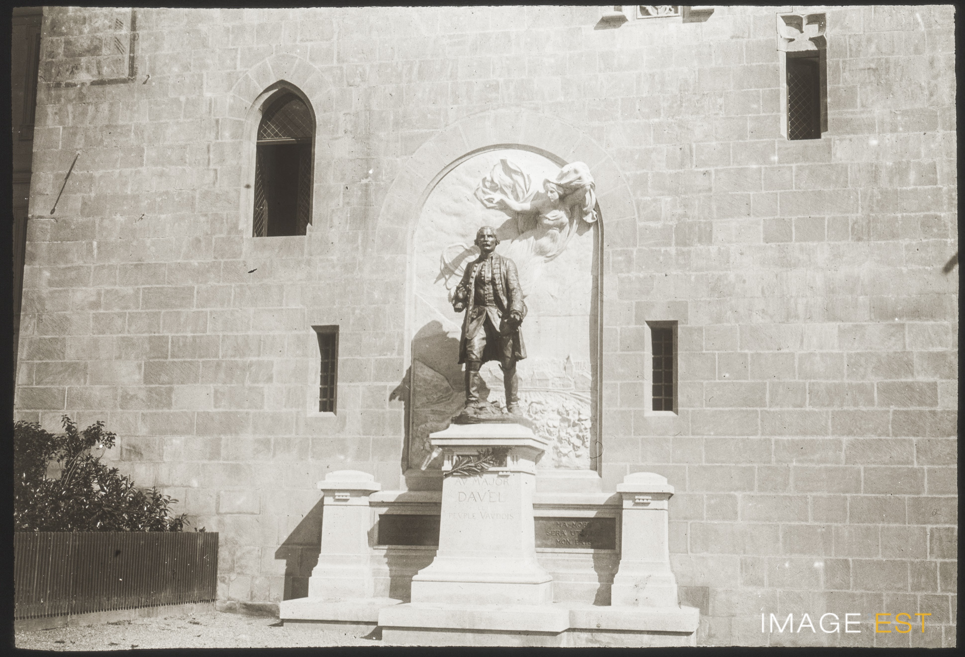Statue du major Davel à Lausanne (Suisse). Une mention manuscrite en marge de la plaque de verre indique : " Lausanne. Monument du Major Davel. "