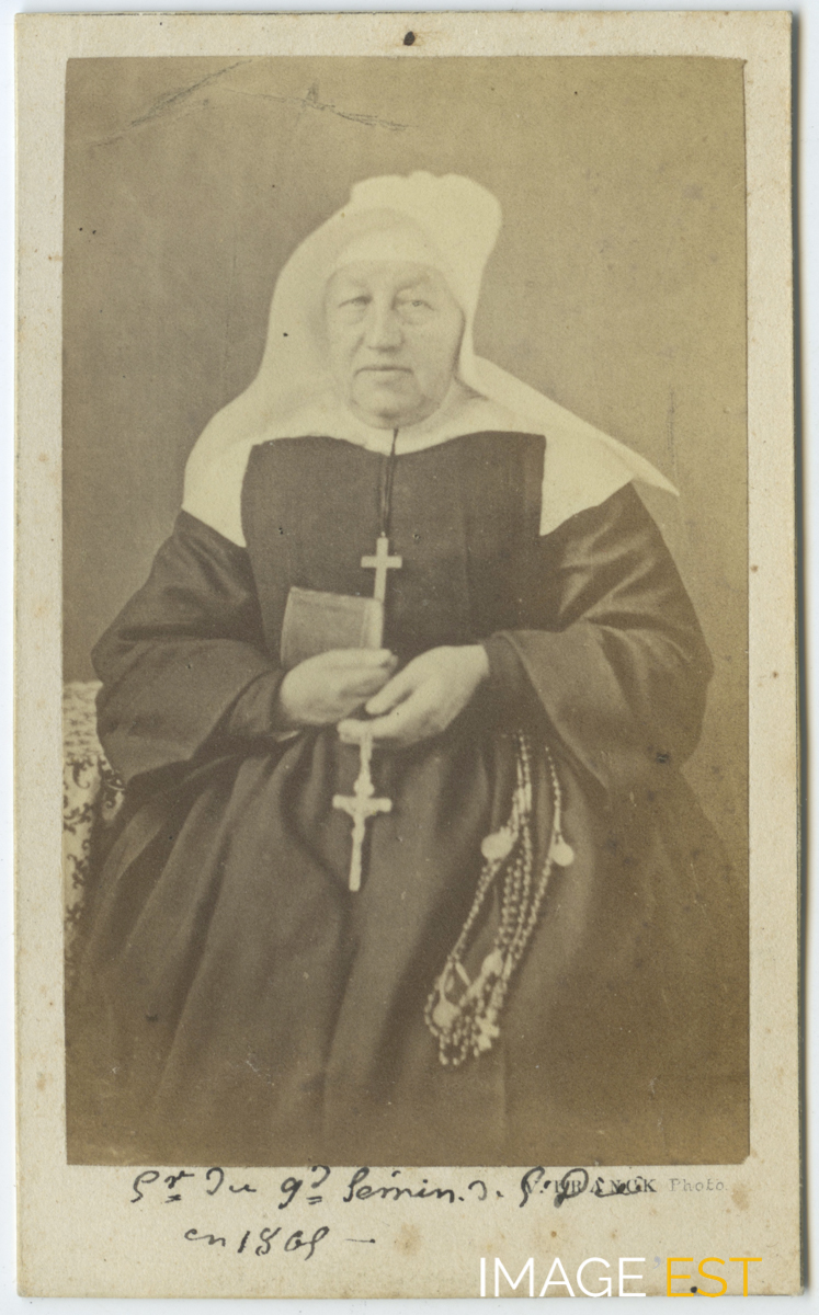 Portrait de la Supérieure du Grand Séminaire à Saint-Dié-des-Vosges (Vosges) en 1868 (?). Cette photographie est extraite d'un album contenant des portraits de nombreux prêtres ayant exercés dans le département des Vosges entre 1870 et 1910 environ.