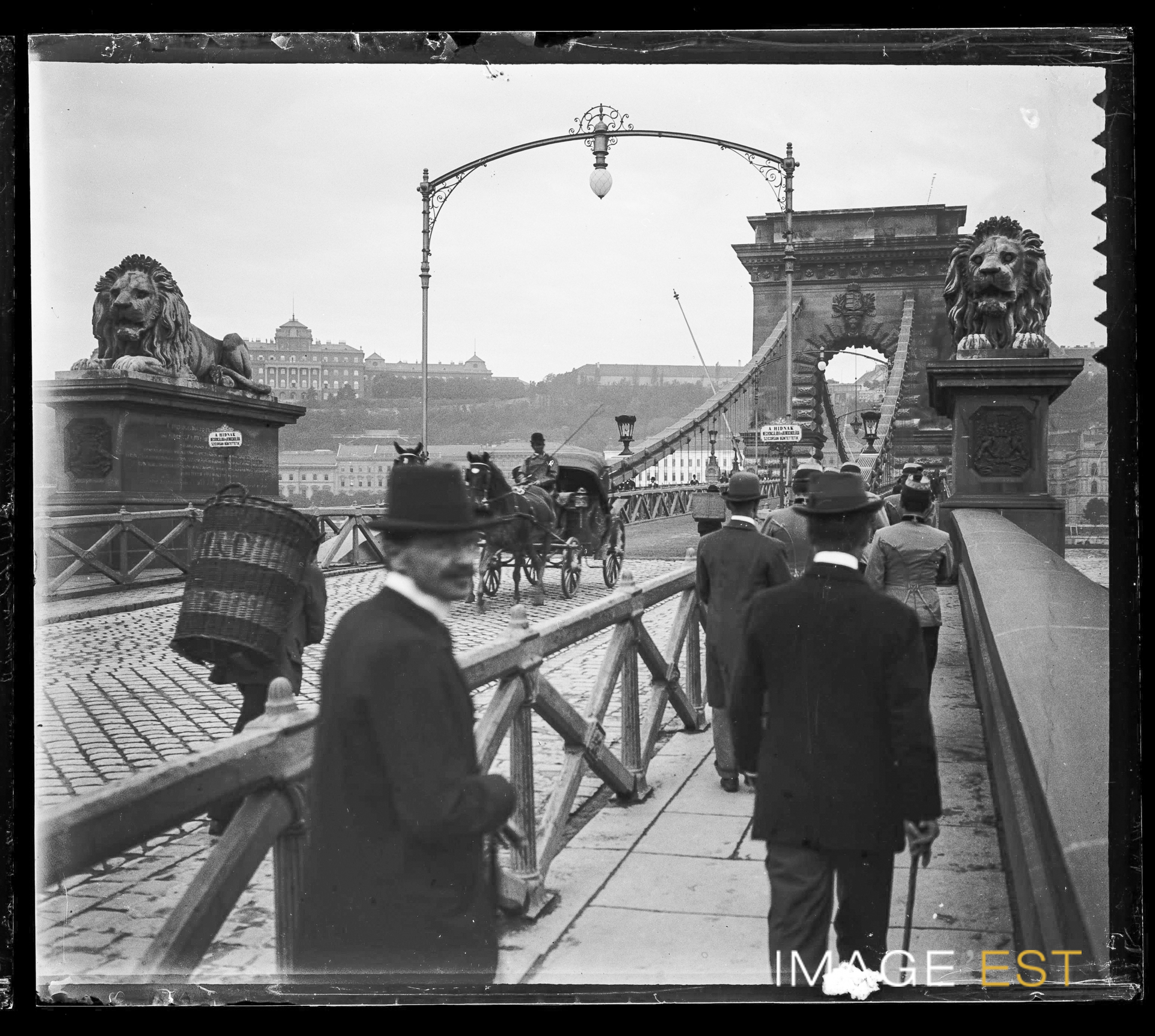 Sur le pont des Chaînes à Budapest (Hongrie).